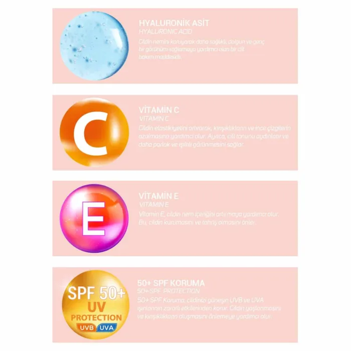 Yeterli miktarda kremi alarak cildinize eşit miktarda uygulayınız. Temizlenmiş cildinize makyaj bazı, nemlendirici ve güneş koruyucu olarak her gün kullanabilirsiniz.
