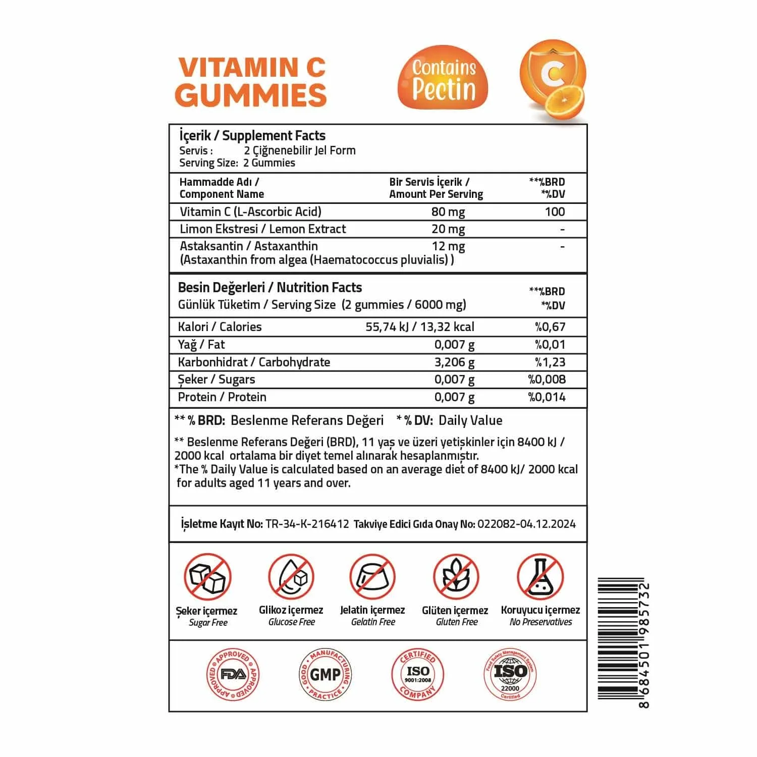 Takviye Edici Gıda Onay No: 022082 – 04.12.2024