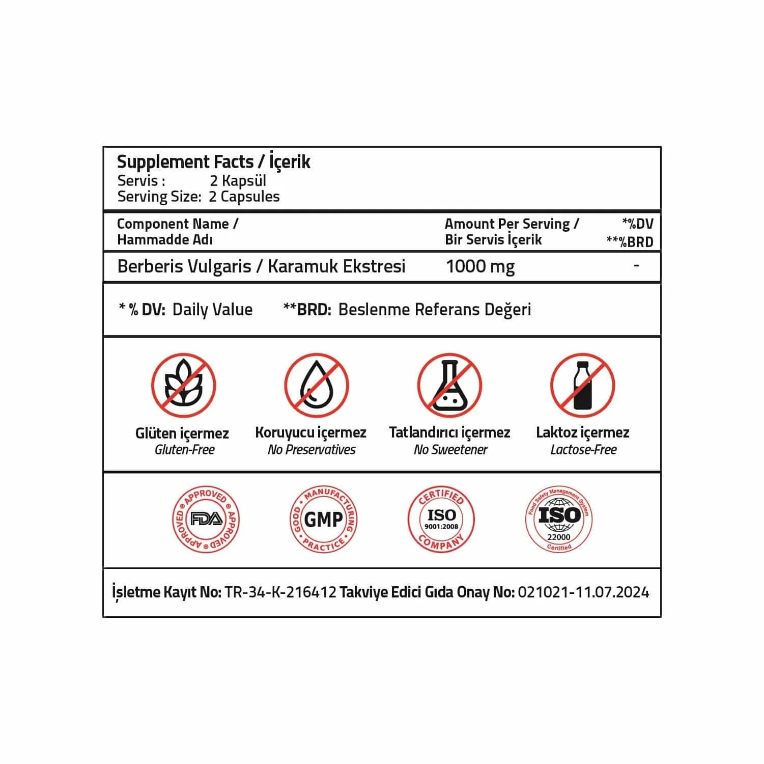 Takviye Edici Gıda Onay No : 021021 – 11.07.2024
