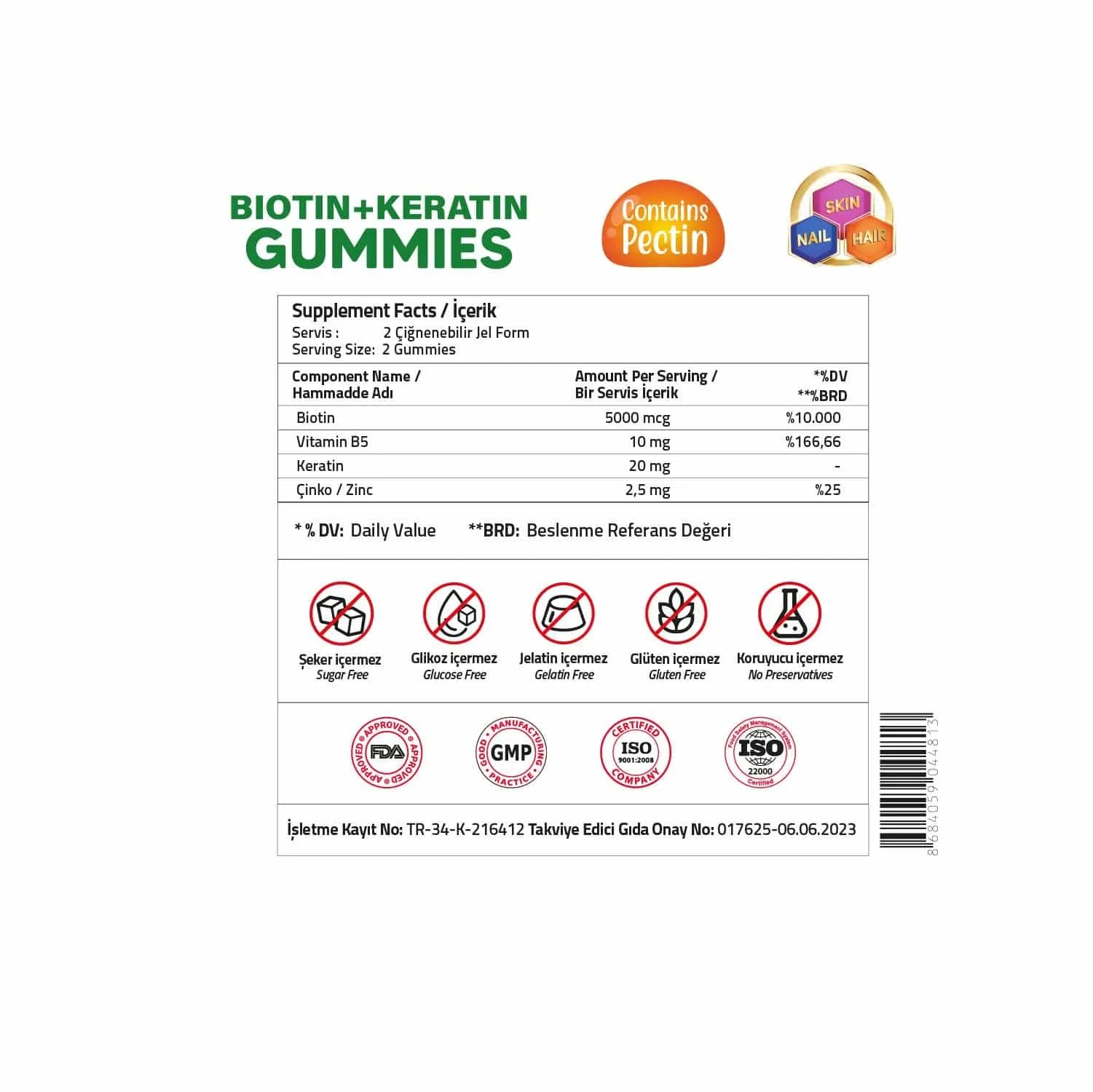 Takviye Edici Gıda Onay No: 017625 – 06.06.2023