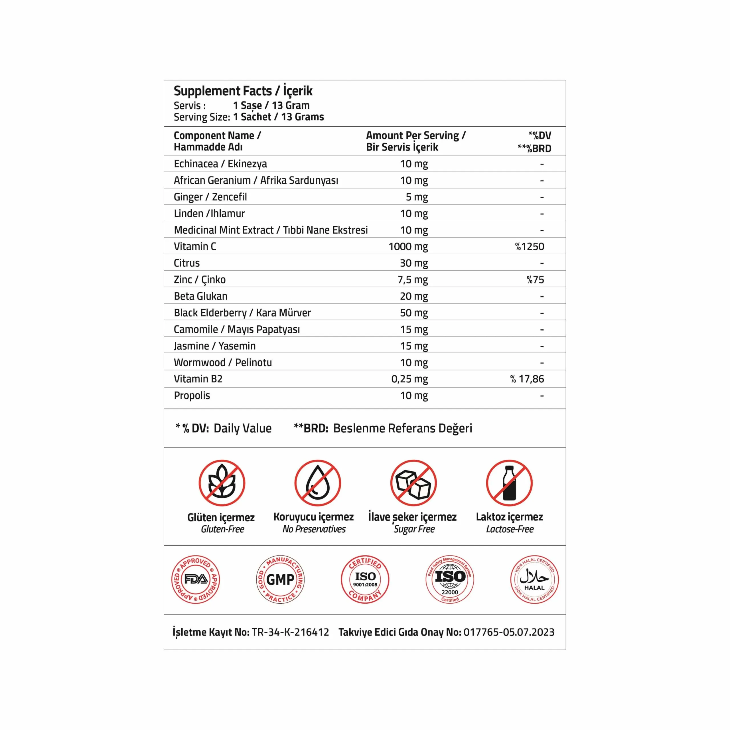 Takviye Edici Gıda Onay No: 017765 – 05.07.2023