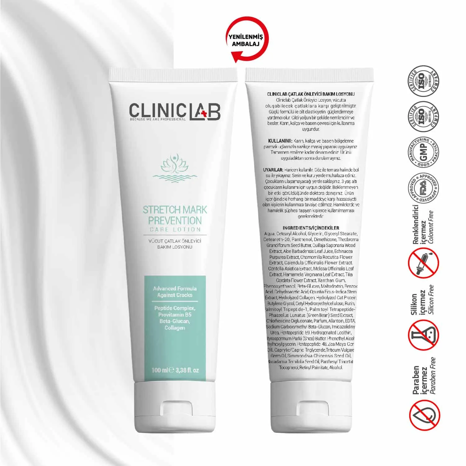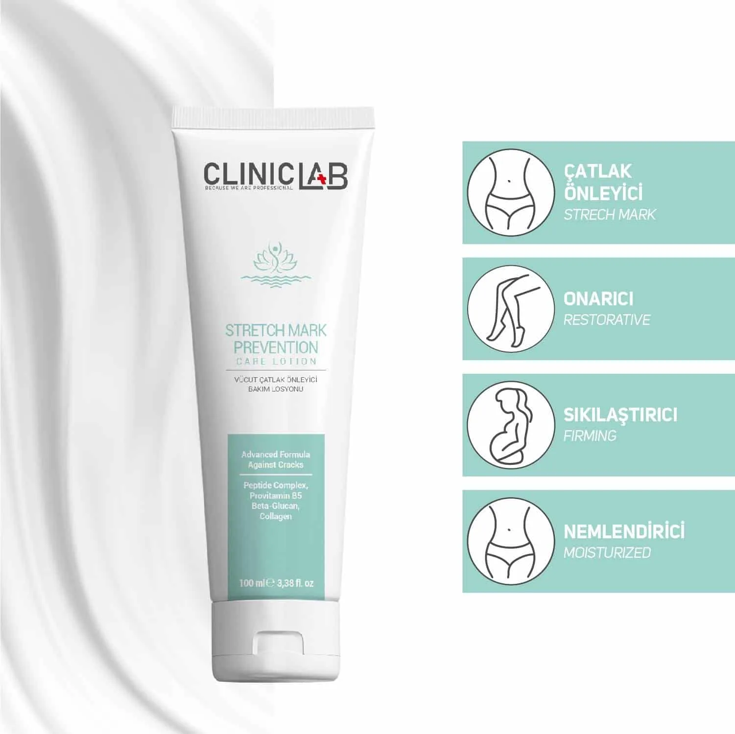 Cliniclab Çatlak Önleyici Losyon, vücutta oluşabilecek çatlaklara karşı geliştirilmiştir. Güçlü formülü ile cilt elastikiyetini güçlendirmeye yardımcı olur. Cildi yoğun bir şekilde nemlendirir ve besler. Karın, kalça ve basen çevresi için kullanıma uygundur.