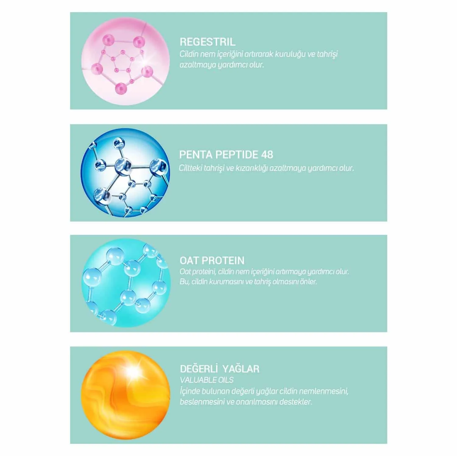 İÇİNDEKİLER : Aqua, Cetearyl Alcohol, Glycerin, Glyceryl Stearate, Ceteareth-20, Panthenol, Dimethicone, Theobroma Grandiflorum Seed Butter, Quillaja Saponaria Wood Extract, Aloe Barbadensis Leaf Juice, Echinacea Purpurea Extract, Chamomilla Recutita Flower Extract, Calendula Officinalis Flower Extract, Centella Asiatica Extract, Melissa Officinalis Leaf Extract, Hamamelis Virginiana Leaf Extract, Tilia Cordata Flower Extract, Xanthan Gum, Phenoxyethanol, Beta-Glucan, Maltodextrin, Benzoic Acid, Dehydroacetic Acid, Opuntia Ficus-Indica Stem Extract, Hydrolyzed Collagen, Hydrolyzed Oat Protein, Butylene Glycol, Cetyl Hydroxyethylcellulose, Rutin, Palmitoyl Tripeptide-1, Palmitoyl Tetrapeptide-7, Phaseolus Lunatus (Green Bean) Seed Extract, Chlorhexidine Digluconate, Parfum, Allantoin, EDTA, Sodium Carboxymethyl Beta-Glucan, Imidazolidinyl Urea, Pentapeptide-59, Hydrogenated Lecithin, Butyrospermum Parkii (Shea) Butter, Phenethyl Alcohol, Ethylhexylglycerin, Pentapeptide-48, Zea Mays Germ Oİl, Caprylic/Capric Triglyceride,Triticum Vulgare Germ Oil, Simmondsia Chinensis Seed Oil, Macadamia Ternifolia Seed Oil, Panthenyl Triacetate, Tocopherol, Retinyl Palmitate, Alcohol.