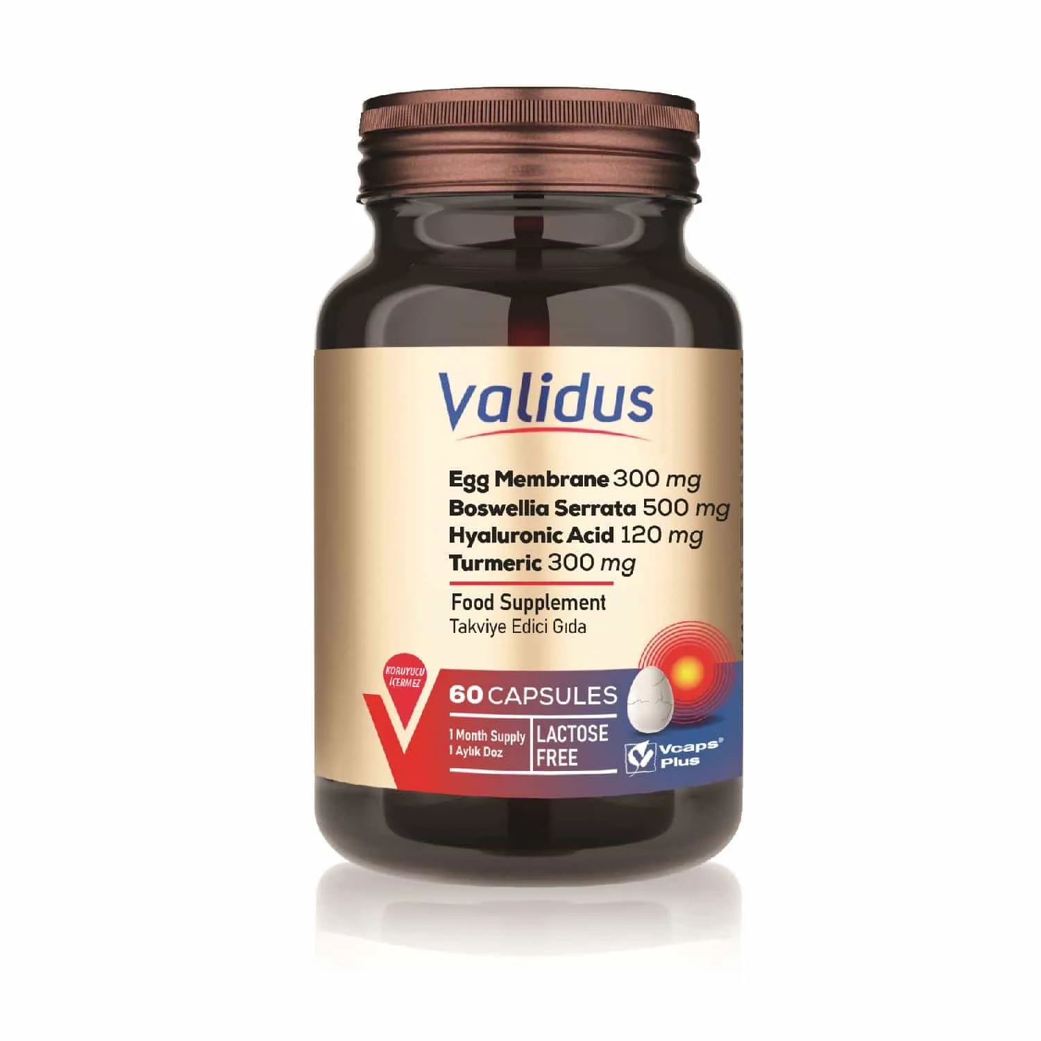 Validus Egg Membrane 300 mg + Boswellia Serrata 500 mg + Hyaluronic Acid 120 mg + Turmeric 300 mg