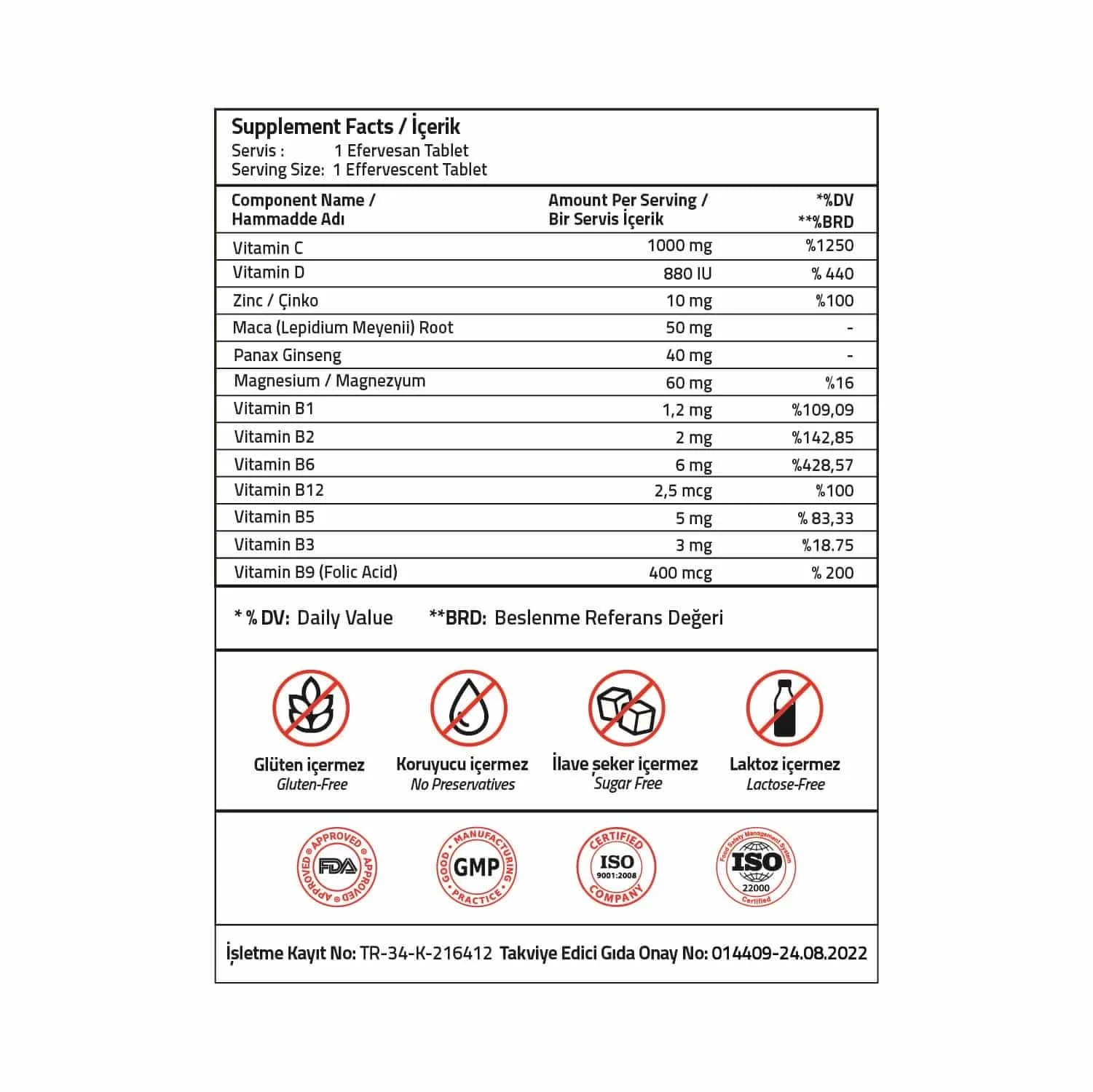 Günlük Alım Dozu: 11 yaş ve üzeri yetişkinler tarafından günde 1 adet tablet yemeklerden sonra alınması tavsiye edilir.