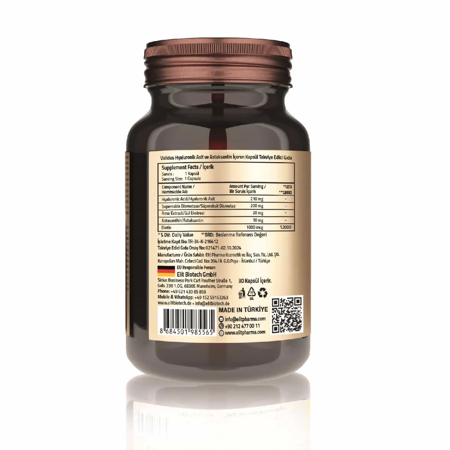 Validus Hyaluronic Acid 210 mg + Astaxanthin 10 mg 30 Kapsül