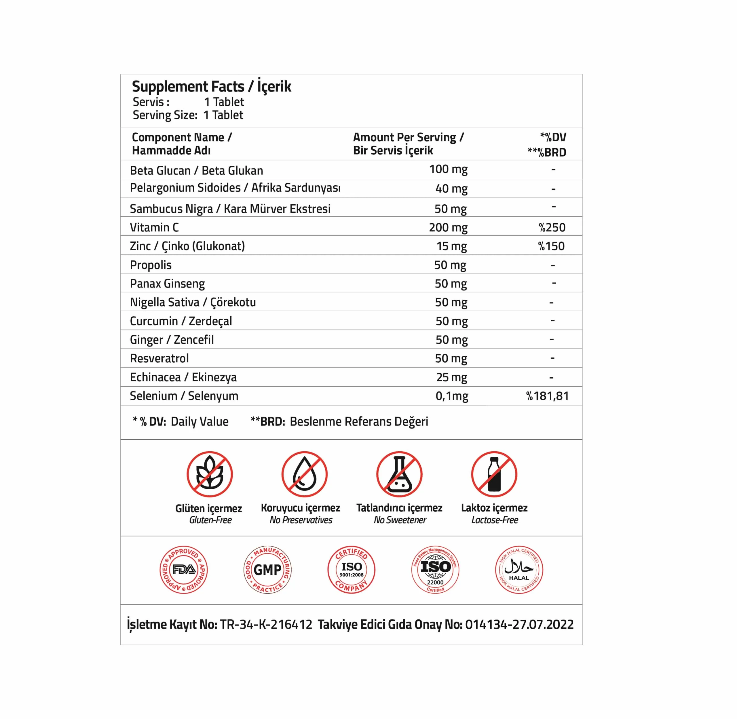 Takviye Edici Gıda Onay No: 014134 – 27.07.2022
