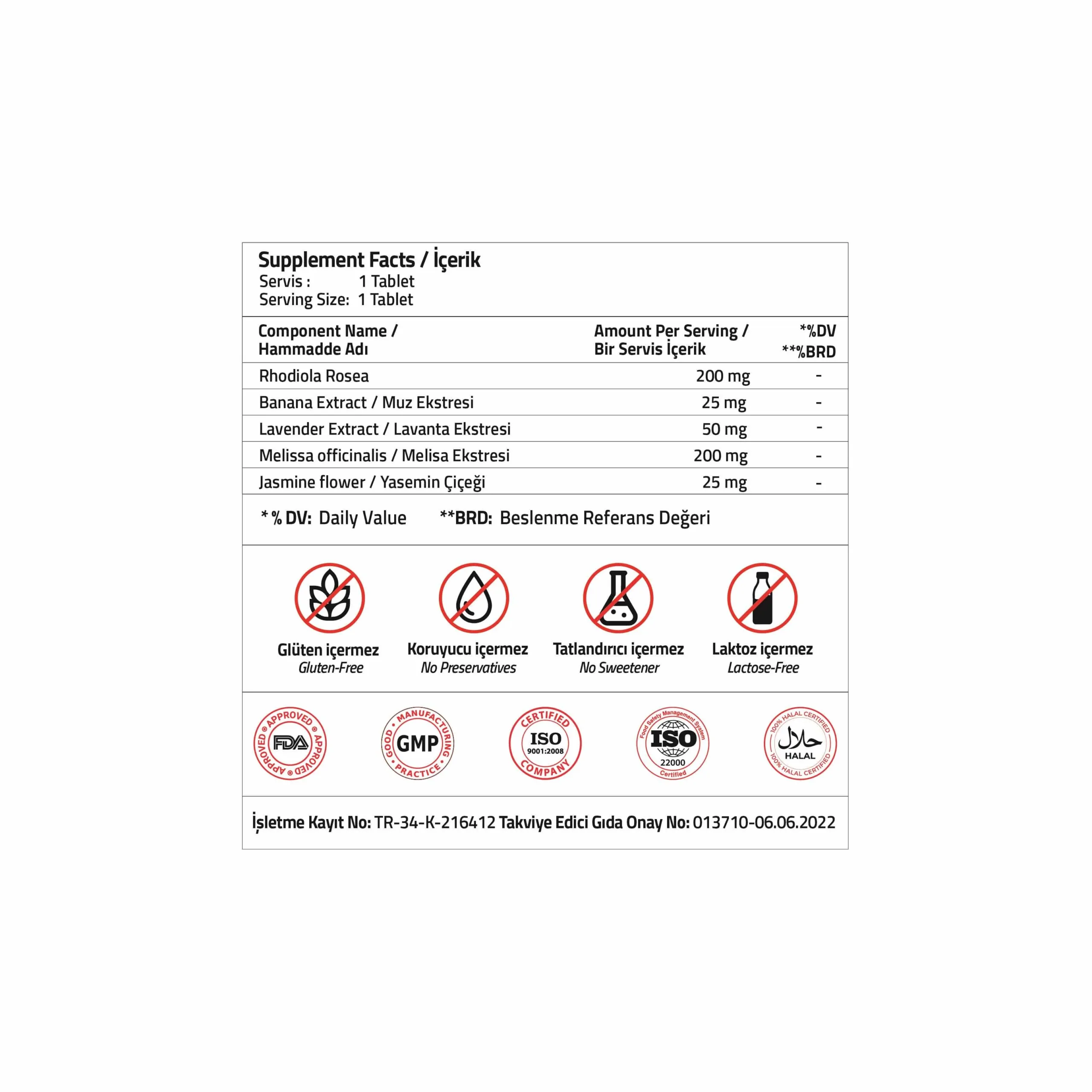 Takviye Edici Gıda Onay No: 013710 – 06.06.2022