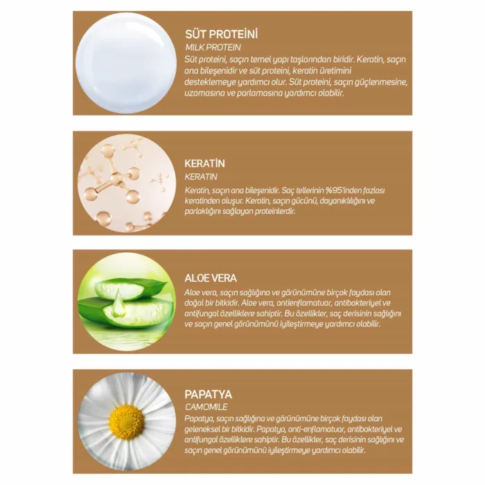 Milk Keratin Kompleks Saç Onarıcı Şampuan saçları besleyerek güçlendirir. Kırılma, kopma problemlerini azaltmaya yardımcı olur.