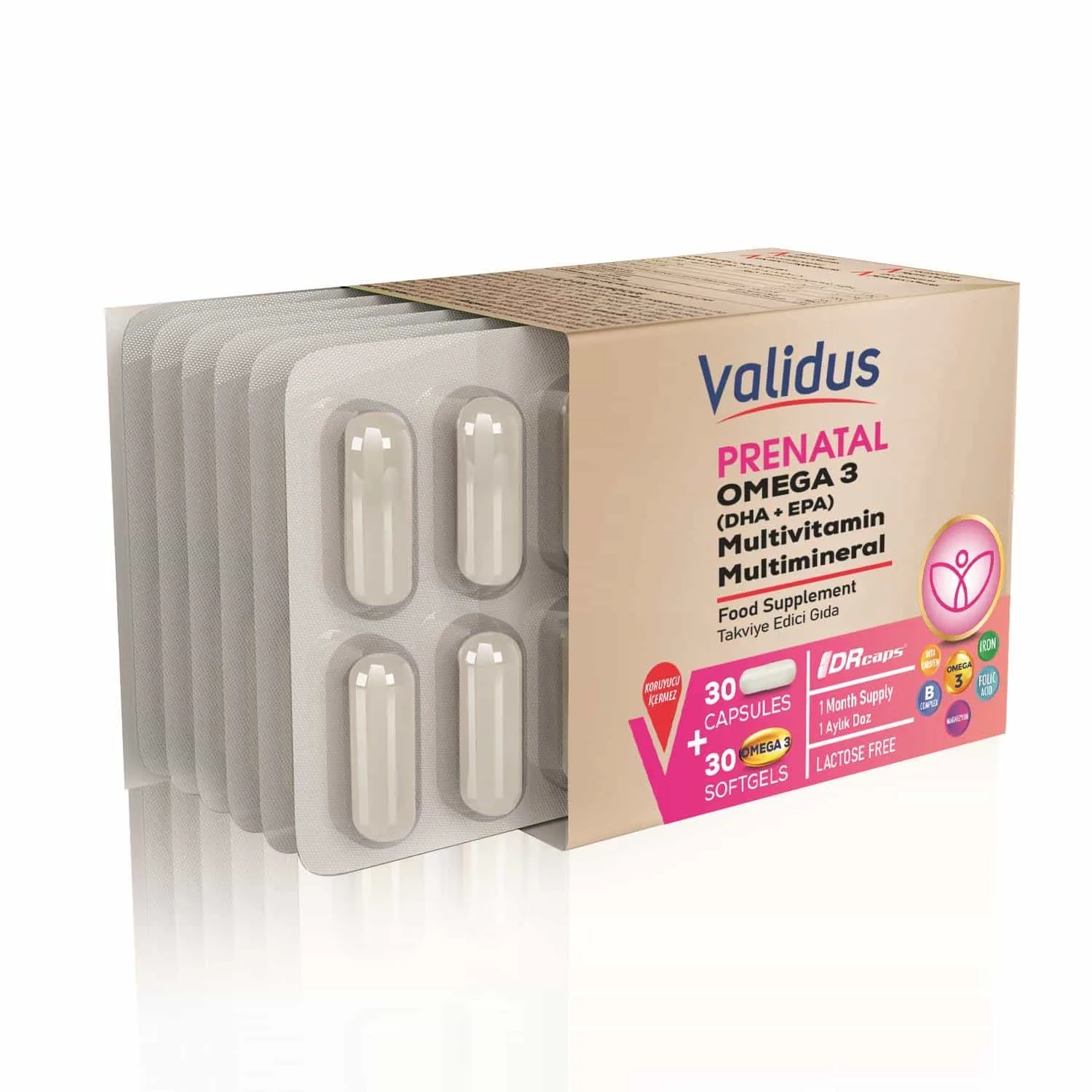 Validus Prenatal 30 Kapsül + Omega 3 DHA 350 EPA 70 mg 30 Softgel Blister Set
