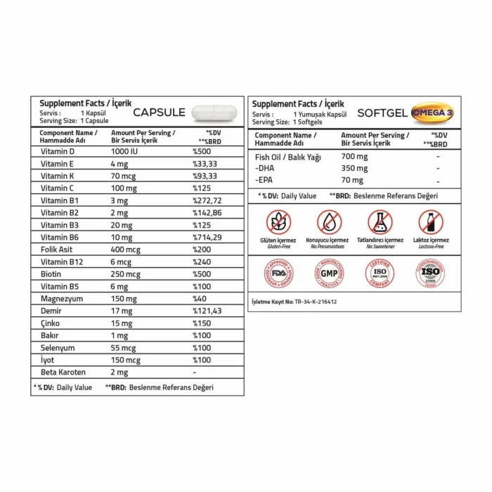 “Prenatal Multivitamin Mineral 30 Capsules Omega 3 Dha 350 Epa 70 Mg 30 Softgel Blister Set” için yorum yapan ilk kişi siz olun