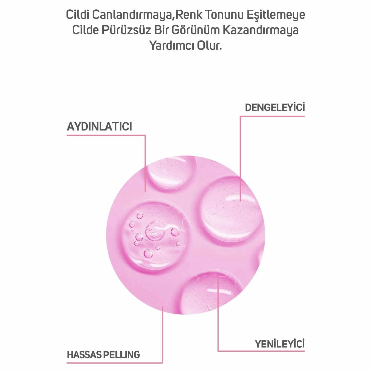 İçerdiği AHA ve BHA grubu asitler ile peeling özelliği sayesinde cildi yenilemeye, gözenekleri temizlemeye, cildin parlaklığını artırmaya, cilt tonunu eşitlemeye ve aydınlatmaya yardımcı olur.