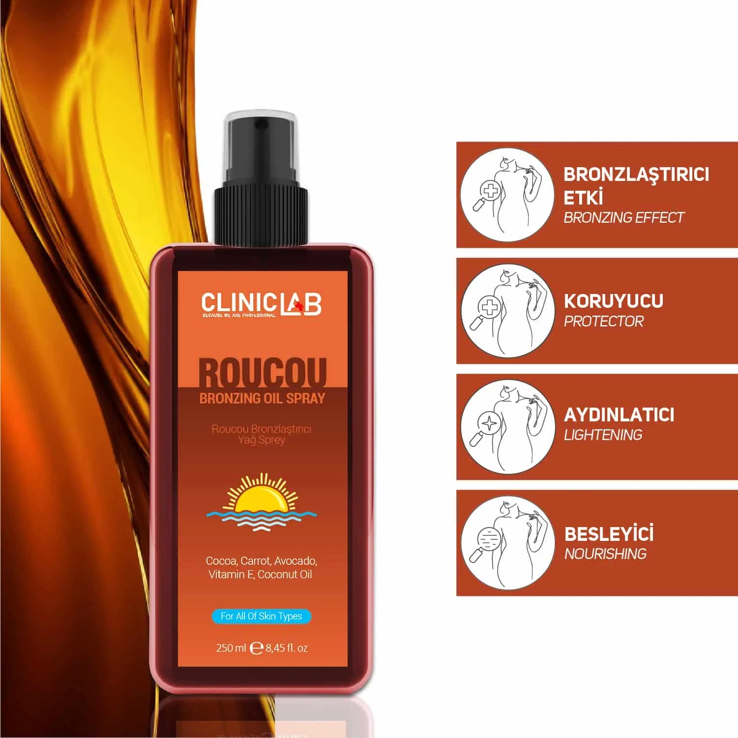 Clınıclab Roucou Bronzlaştırıcı Yağ Sprey 250ml