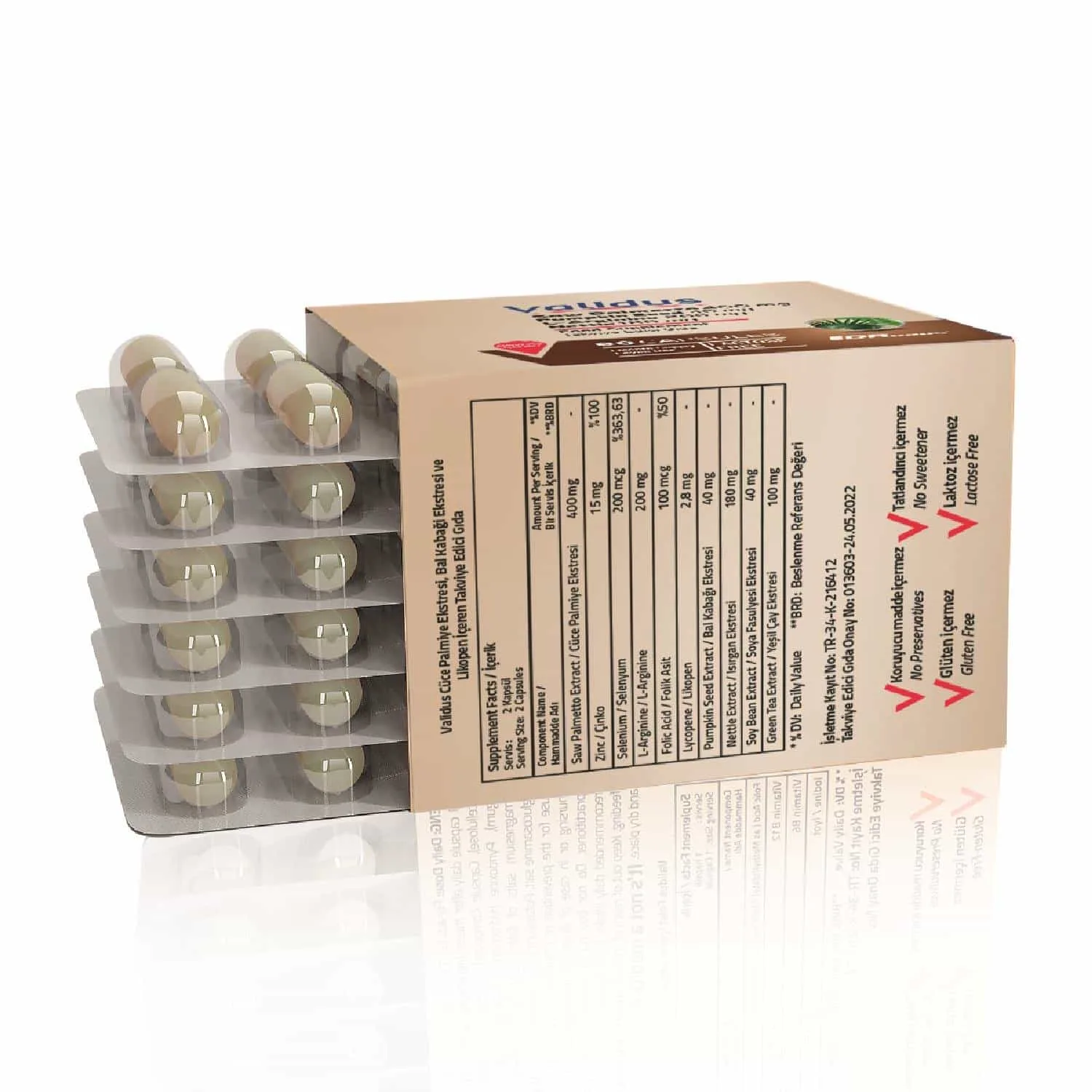 Validus Saw Palmetto 400 mg + L-Arginine + Pumpkin Seed + Nettle 60 Kapsül