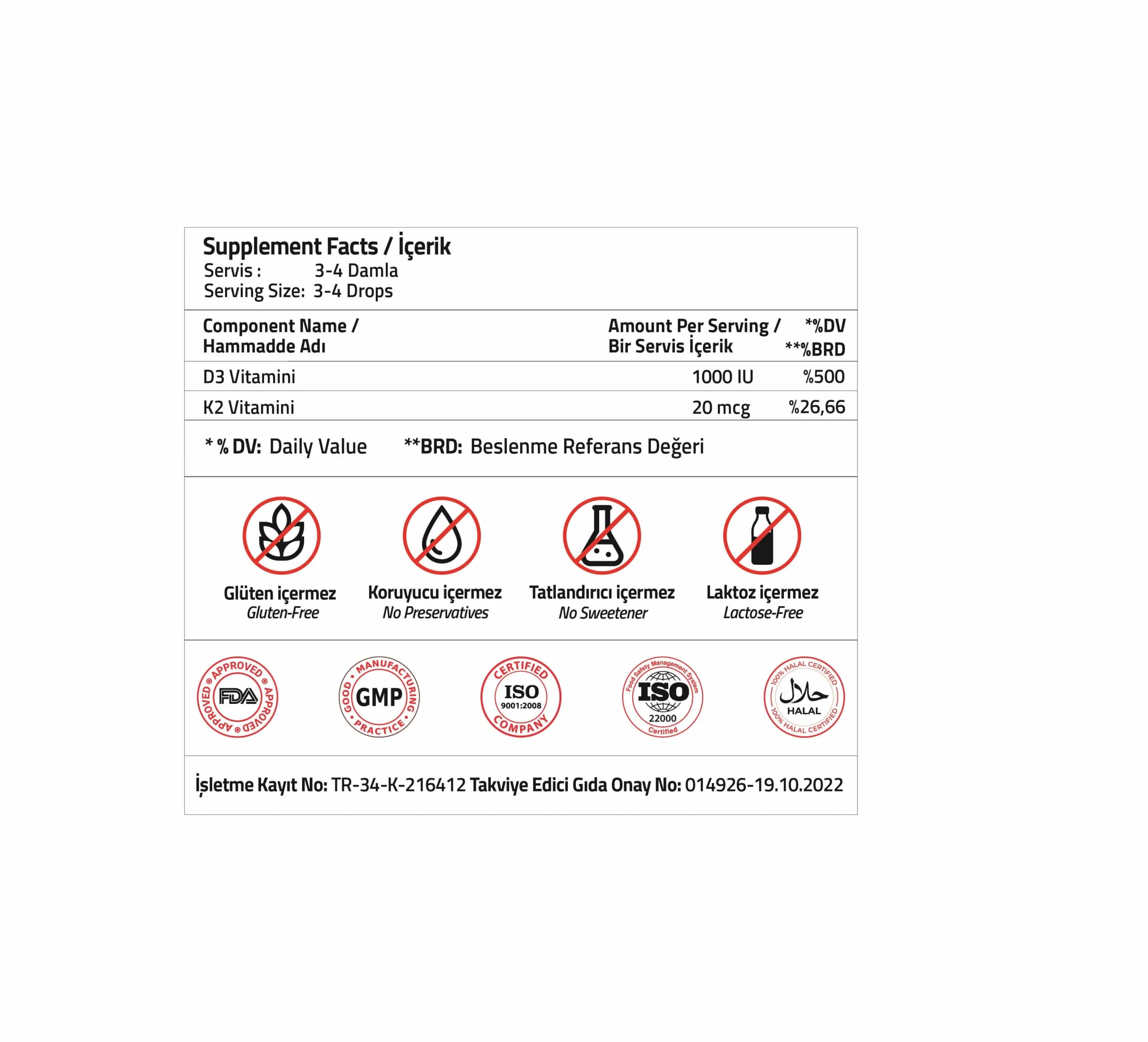 Takviye Edici Gıda Onay No: 013714 – 06.06.2022