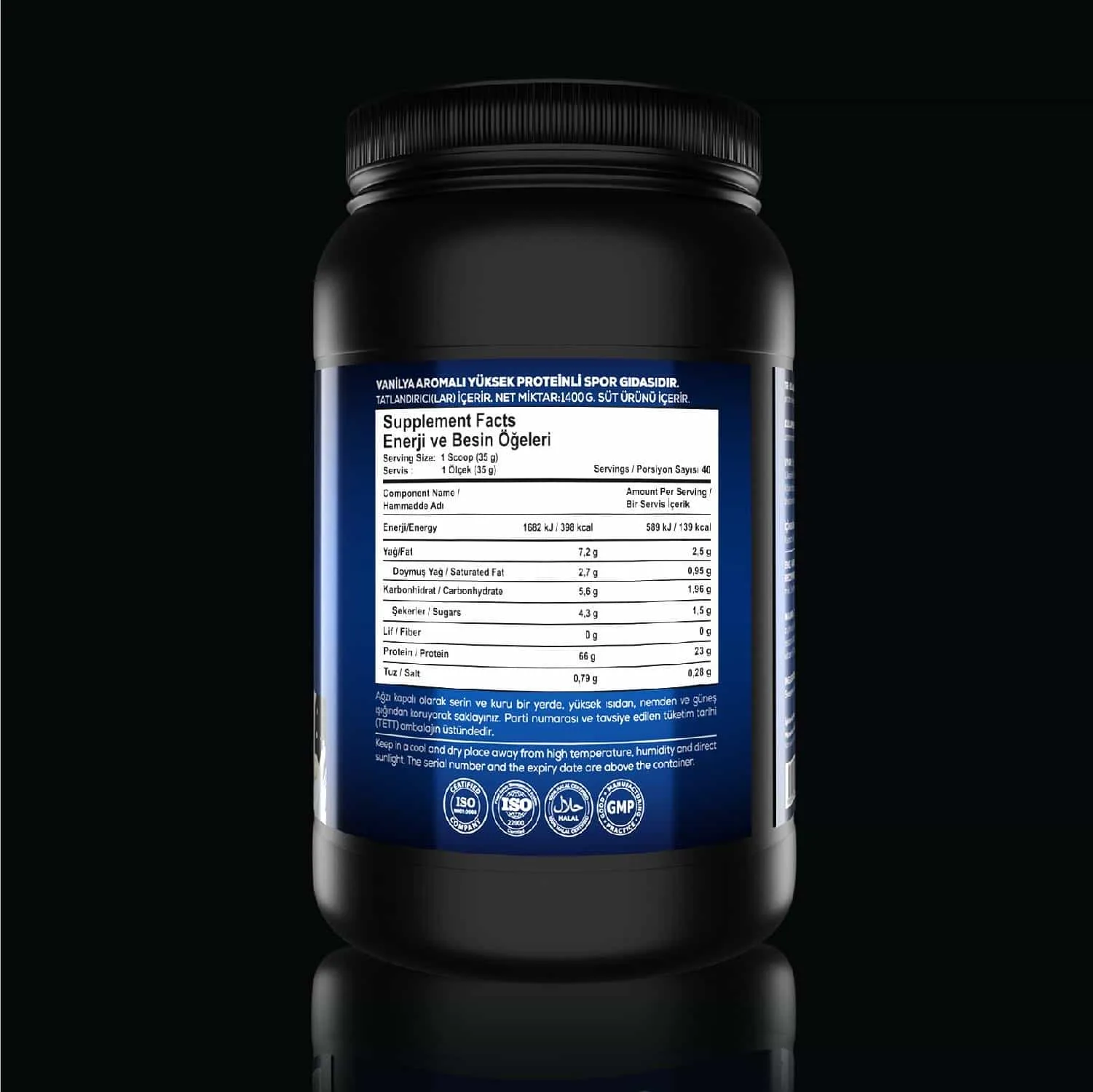 Günlük Alım Dozu: 1 porsiyon (1 ölçek, 35 g) 150 ml su veya az yağlı süt ile karıştırılarak antrenmandan hemen sonra günde 1 porsiyon alınır. Protein içeren spor gıdası olarak yoğun fiziksel aktivite dönemlerinde protein dengesini korumaya yardımcı olur.