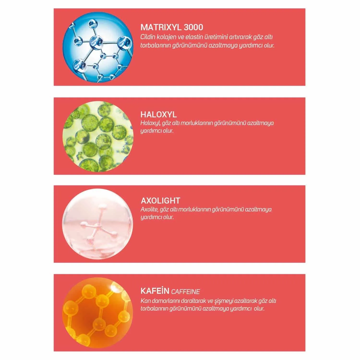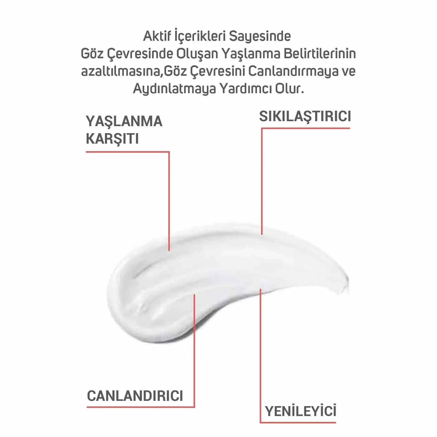 Göz çevresinin aydınlatılmasına, göz çevresi kırışıklıklarının minimize edilmesine yardımcı olur.