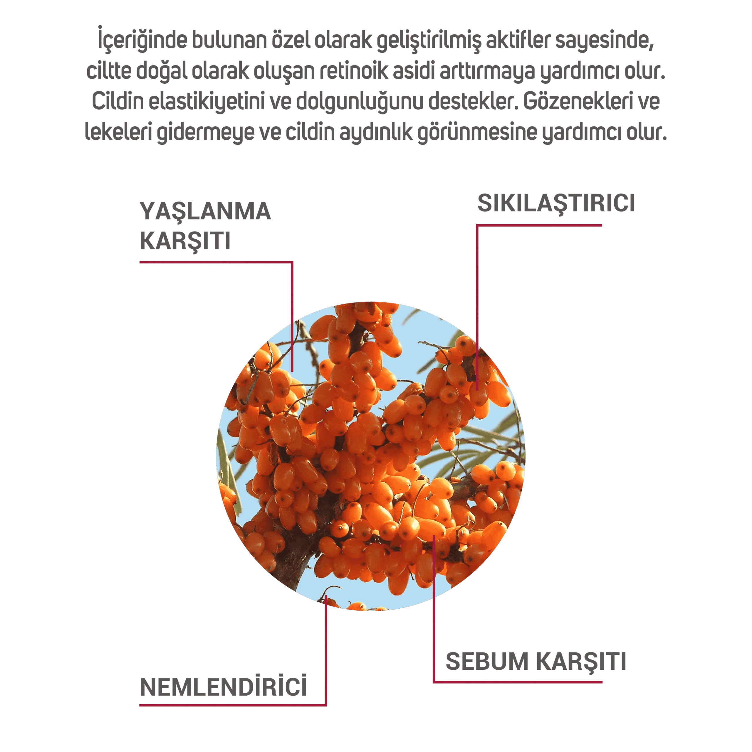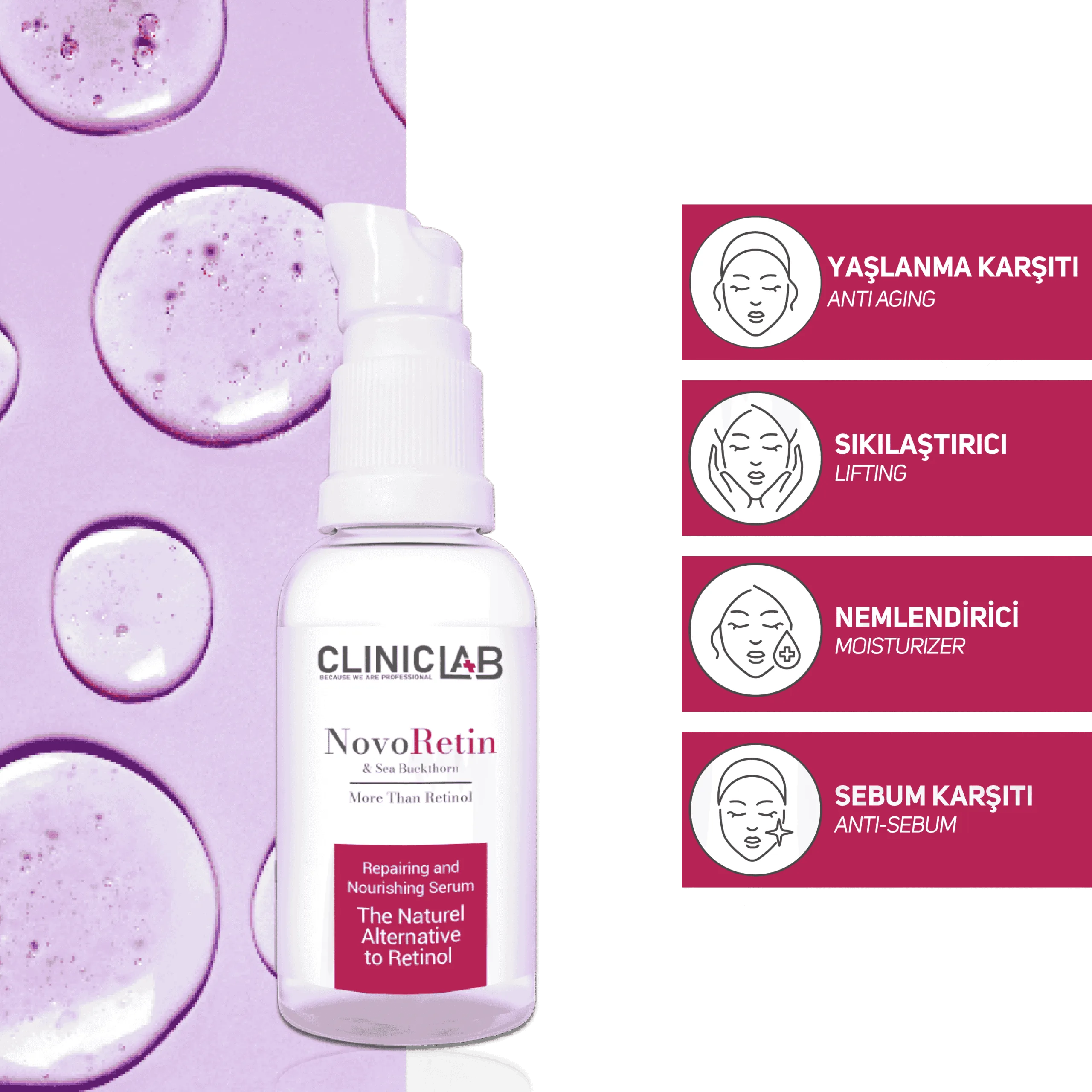 Cliniclab  İçeriğinde bulunan özel olarak geliştirilmiş aktifler sayesinde, ciltte doğal olarak oluşan retinoik asidi arttırmaya yardımcı olur. Cildin elastikiyetini ve dolgunluğunu destekler ve cildin aydınlık görünmesine yardımcı olur.