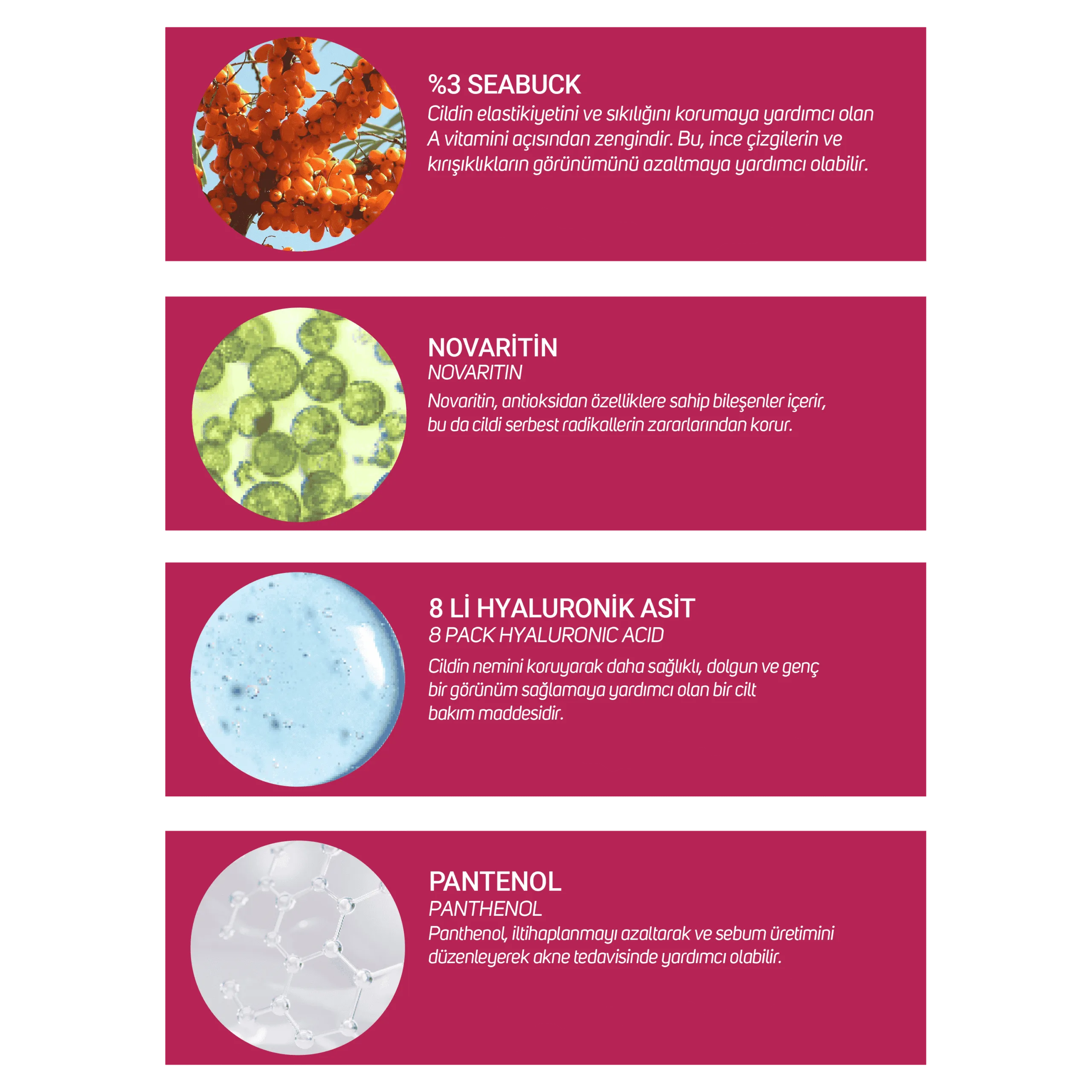 Aqua, Glycerin, Sodium Polyacrylate, Phenoxyethanol, Hydrogenated Polydecene, Panthenol, Caprylic/Capric Triglyceride, Hippophae Rhamnoides Fruit Extract, Trideceth-6, Glycyrrhiza Glabra Root Extract, Ethylhexylglycerin, Pentylene Glycol, Pistacia Lentiscus (Mastic) Gum, Lecithin , 1,2-Hexanediol, Xanthan Gum, Glyceryl Caprylate/Caprate, Caprylyl Glycol, Butylene Glycol, Glucose, Sodium Hyaluronate, Chondrus Crispus Extract, Hydroxypropyltrimonium Hyaluronate, Hydrolyzed Hyaluronic Acid, Sodium Acetylated Hyaluronate, Hyaluronic Acid, Sodium Hyaluronate Crosspolymer, Hydrolyzed Sodium Hyaluronate, Potassium Hyaluronate.