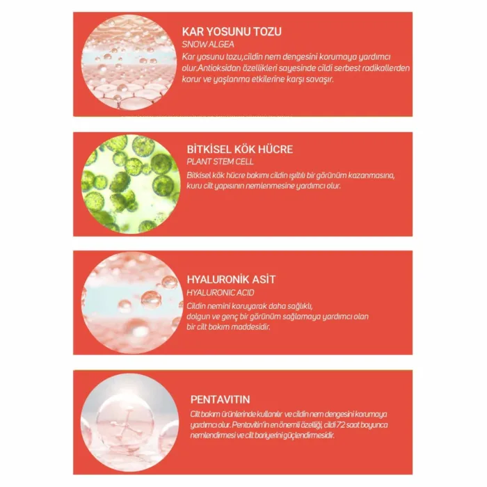 Yaşlanma karşıtı ve sıkılaştırıcı cilt bakım serumu, cildi besleyerek yaşlanma etkilerinin azaltılmasına yardımcı olur. İçeriğinde bulunan aktif bileşenler sayesinde cilt elastikiyetini arttırarak cildin daha canlı görünmesine destek olur.